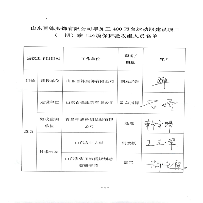 山東百鋒服飾有限公司年加工 400 萬(wàn)套運(yùn)動(dòng)服建設(shè)項(xiàng)目簽名圖片